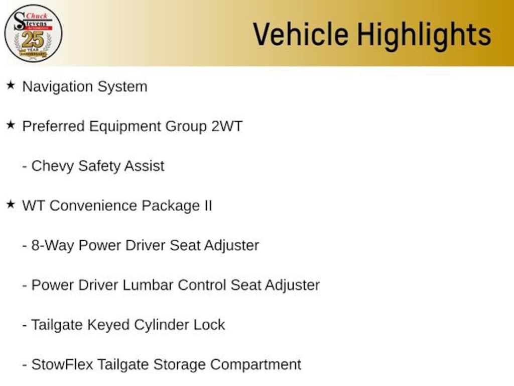 LIFETIME POWERTRAIN WARRANTY PROGRAM is included at no additional charge for all vehicles that have less than 80,000 miles. It is one of the most comprehensive powertrain warranty programs in the market. See dealer for details. Price includes: $1000 - Chevrolet Consumer Cash Program. Exp. 03/02/2026 $2000 - Chevrolet Conquest Program. Exp. 03/02/2026 $500 - GM First Responder Cash Allowance Program. Exp. 01/04/2027 $500 - GM Rewards Card Sales Sign Up and Spend Offer. Exp. 06/30/2026