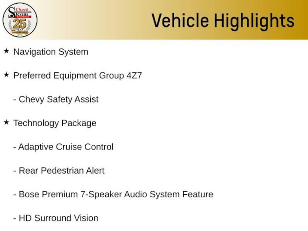 Safety is also a top priority, with features like Automatic Emergency Braking, Front Pedestrian & Bicyclist Braking, and Chevy Safety Assist providing you with added peace of mind. The HD Surround Vision camera system and Rear Pedestrian Alert further enhance your awareness and security.