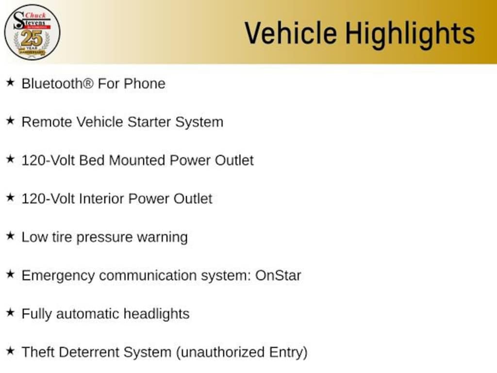 LIFETIME POWERTRAIN WARRANTY PROGRAM is included at no additional charge for all vehicles that have less than 80,000 miles. It is one of the most comprehensive powertrain warranty programs in the market. See dealer for details. Price includes: $1000 - Chevrolet Select Market Bonus Cash. Exp. 04/30/2026 $2000 - Chevrolet Consumer Cash Program. Exp. 04/30/2026 $500 - GM First Responder Cash Allowance Program. Exp. 01/04/2027 $500 - GM Rewards Card Sales Sign Up and Spend Offer. Exp. 06/30/2026
