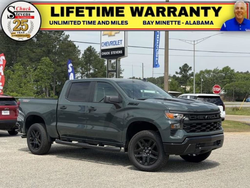 Welcome to Chuck Stevens Chevrolet located on HWY 31 South, Bay Minette Alabama. We are home of The Lifetime Powertrain Program. A Lifetime Powertrain Warranty at no additional cost. Grab a great deal with our low-price guarantee on this 2026 Chevrolet Silverado 1500 while we still have it. The Cypress Gray 2026 Chevrolet Silverado 1500 with Black Cloth interior is a wonderful choice.Recent Arrival! 2026 Chevrolet Silverado 1500 Custom Trail Boss Cypress Gray 4D Crew Cab Custom Trail Boss 2.7L I4 Turbocharged DOHC 16V LEV3-SULEV30 310hp 4WD 8-Speed AutomaticCOMPLIMENTARY DELIVERY PROGRAM is a convenient service available to our clients 6 days a week, anywhere within a 50-mile radius. Allow one of our Chevrolet Product Specialists to help set up all your personal functions from the comfort of your home or office!LIFETIME POWERTRAIN PROGRAM is included at no additional charge for all vehicles that have less than 80,000 miles. It is one of the most comprehensive powertrain warranty programs on the market. See dealer for details.. Price includes: $1000 - Chevrolet Select Market Bonus Cash. Exp. 04/30/2026 $2000 - Chevrolet Consumer Cash Program. Exp. 04/30/2026 $500 - GM First Responder Cash Allowance Program. Exp. 01/04/2027 $500 - GM Rewards Card Sales Sign Up and Spend Offer. Exp. 06/30/2026