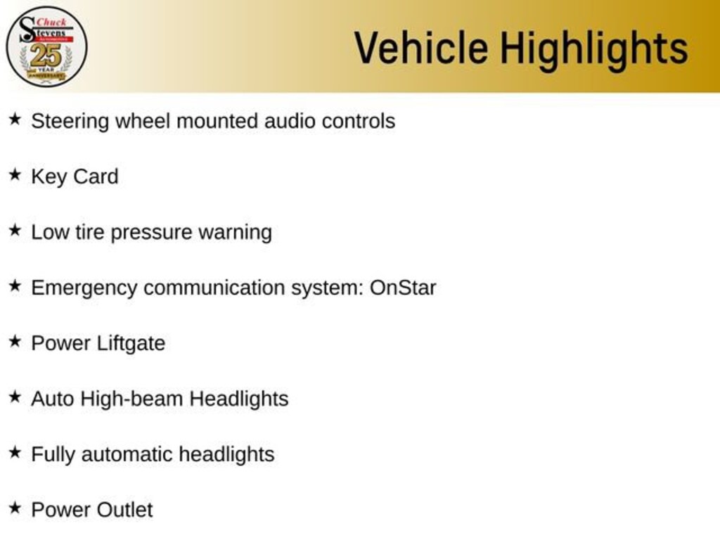 LIFETIME POWERTRAIN PROGRAM is included at no additional charge for all vehicles that have less than 80,000 miles. It is one of the most comprehensive powertrain warranty programs on the market. See dealer for details. Price includes: $1250 - GM Costco Executive Member Private Offer . Exp. 04/30/2026 $500 - GM First Responder Cash Allowance Program. Exp. 01/04/2027 $500 - GM Rewards Card Sales Sign Up and Spend Offer. Exp. 06/30/2026