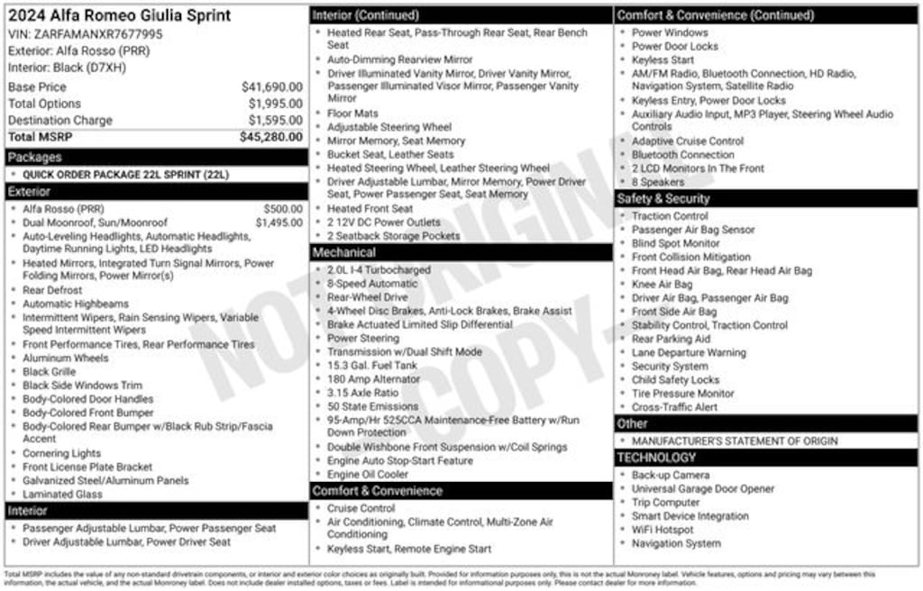 Take advantage of our low-price guarantee on this 2024 Alfa Romeo Giulia. This Giulia comes finished in Alfa Rosso with a Black interior, making it a superb choice for your next vehicle.