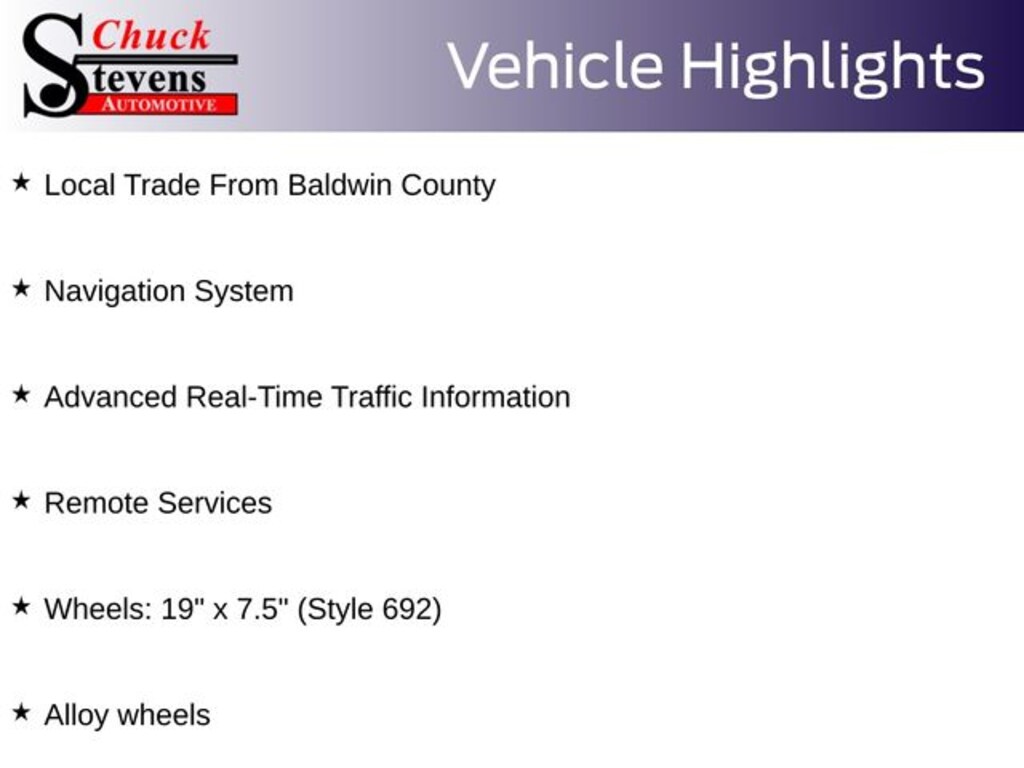 Local Trade From Baldwin County, Advanced Real-Time Traffic Information, Alloy wheels, Navigation System, Remote Services, Wheels: 19" x 7.5" (Style 692).