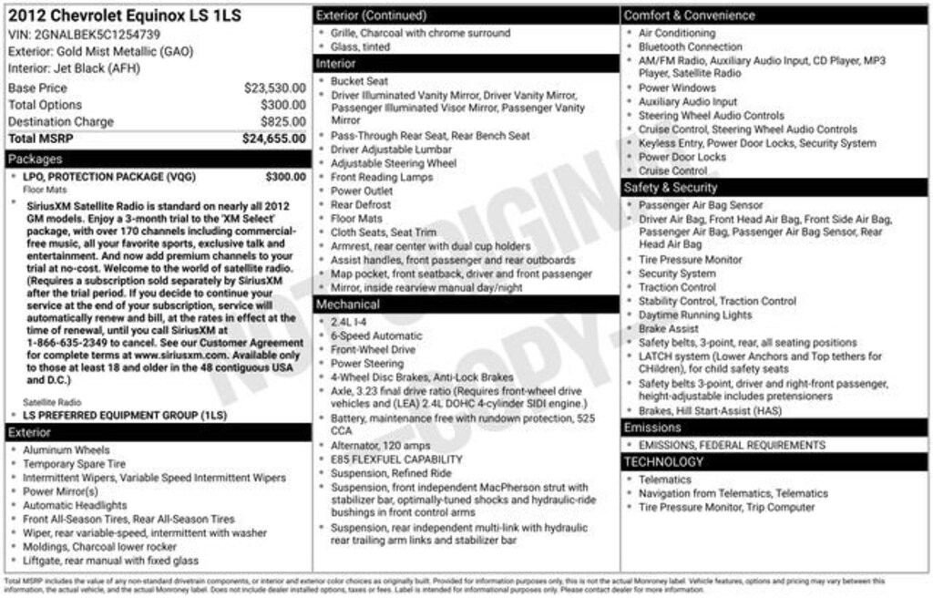 2012 Chevrolet Equinox LS Gold Mist Metallic 4D Sport Utility LS FWD 2.4L 4-Cylinder SIDI DOHC 6-Speed Automatic with Overdrive