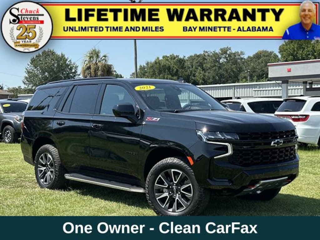 Welcome to Chuck Stevens Dodge Chrysler Jeep Ram Fiat located on HWY 31 South, Bay Minette Alabama. We are home of The Lifetime Powertrain Warranty at no additional cost. Grab a great deal with our low-price guarantee on this 2021 Chevrolet Tahoe Z71 while we still have it. At Chuck Stevens CDJRF our Pre-Owned vehicles have been fully inspected and reconditioned by a certified technician. The Black 2021 Chevrolet Tahoe Z71 with Leather interior is a wonderful choice.