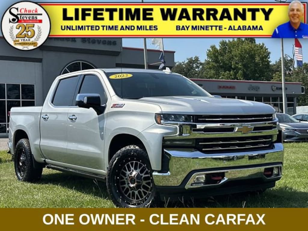 Welcome to Chuck Stevens Chevrolet located on HWY 31 South, Bay Minette Alabama. We are home of Lifetime Powertrain Warranty. A Lifetime Powertrain Warranty at no additional cost.Grab a great deal with our low-price guarantee on this 2022 Chevrolet Silverado 1500 LTD LTZ while we still have it. At Chuck Stevens Chevrolet our Pre-Owned vehicles have been fully inspected and reconditioned by a certified technician. The Silver 2022 Chevrolet Silverado 1500 LTD LTZ with Jet Black interior is a wonderful choice.The online price includes a $2,500 Cash Down or trade equity. To qualify, customers must trade in a vehicle with a minimum appraised value of $2,500 or Cash Down. All prices reflect dealership financing and include a $1,000 finance coupon. See dealer for full details. 6.2L V8 EcoTec3 engine with 420 horsepower and 460 lb-ft of torque Z71 Off-Road and Protection Package with all-terrain tires, skid plates, and more LTZ Convenience Package II with navigation, Bose premium audio, and wireless charging Heated and ventilated front seats, heated steering wheel, and power tailgateThis Silverado 1500 LTD LTZ is packed with premium features that elevate your driving experience. The powerful 6.2L V8 engine delivers impressive performance, while the Z71 Off-Road Package ensures you can tackle any terrain with confidence. The LTZ Convenience Package II adds advanced tech and premium audio, keeping you connected and entertained on the road.Inside, the Jet Black interior exudes refined style, with heated and ventilated front seats providing unparalleled comfort. The heated steering wheel and power tailgate add convenience, while the Bose premium sound system delivers an immersive listening experience.Whether you're hauling heavy loads, embarking on off-road adventures, or simply enjoying the daily commute, this 2022 Chevrolet Silverado 1500 LTD LTZ is the perfect companion. Its exceptional capabilities, cutting-edge features, and premium comfort make it a standout choice in the full-size truck segment.Don't miss your chance to make this impressive Silverado 1500 LTD LTZ your own. Visit Chuck Stevens Chevrolet today and let our knowledgeable team guide you through the buying process. We're confident you'll be impressed by the quality, value, and performance of this remarkable truck.LIFETIME POWERTRAIN WARRANTY PROGRAM is included at no additional charge for all vehicles that have less than 80,000 miles. It is one of the most comprehensive powertrain warranty programs in the market. See dealer for details.