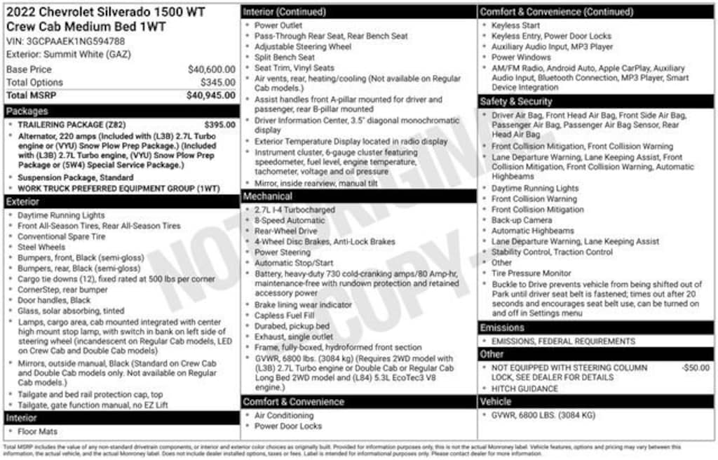 Used 2022 ChevroletSilverado 1500 WT Truck RWD
