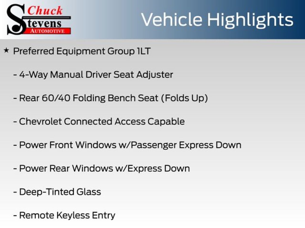 10-Way Power Driver Seat Adjuster w/Lumbar, 12-Volt Rear Auxiliary Power Outlet, 120-Volt Bed Mounted Power Outlet, 120-Volt Instrument Panel Power Outlet, 170 Amp Alternator, 1st & 2nd Row All-Weather Floor Liners (LPO) (AAK), 2 USB Ports (1st Row), 2 USB Ports & 1 SD Card Reader (1st Row), 2-Speed Electronic Shift Transfer Case, 4-Way Manual Driver Seat Adjuster, 4.2" Diagonal Color Display Driver Info Center, 6-Speaker Audio System, Advanced Trailering System, Alloy wheels, Black Chevytec Spray-On Bedliner w/Chevrolet Logo, Black Mirror Caps, Bluetooth® For Phone, Chevrolet Connected Access Capable, Chrome Front Grille, Cloth Rear Seat w/Storage Package, Color-Keyed Carpeting Floor Covering, Compass, Convenience Package, Convenience Package II, Deep-Tinted Glass, Dual Charge-Only USB Ports (2nd Row), Dual-Zone Automatic Climate Control, Electric Rear-Window Defogger, Electrical Lock Control Steering Column, Electronic Cruise Control w/Set & Resume Speed, EZ Lift Power Lock & Release Tailgate, Front 40/20/40 Split-Bench Seats w/Lockable Storage, Front LED Fog Lamps, Front Rubberized Vinyl Floor Mats, Gooseneck/5th Wheel Package, Gooseneck/5th Wheel Prep Package, Halogen Reflector Headlamps, HD Rear Vision Camera, Heated Driver & Front Outboard Passenger Seating, Heated Steering Wheel, Heated Vertical Trailering Mirrors, Hill Descent Control, Hitch Guidance w/Hitch View, Integrated Trailer Brake Controller, Keyless Open & Start, Leather-Wrapped Steering Wheel, LED Cargo Area Lighting, Manual Tilt & Telescoping Steering Column, Manual Tilt-Wheel Steering Column, Off-Road Suspension, OnStar & Chevrolet Connected Services Capable, Power Door Locks, Power Front Windows w/Driver Express Up/Down, Power Front Windows w/Passenger Express Down, Power Rear Windows w/Express Down, Power Sliding Rear Window w/Defogger, Preferred Equipment Group 1LT, Radio: Chevrolet Infotainment 3 Plus System, Rear 60/40 Folding Bench Seat (Folds Up), Rear Rubberized Vinyl Floor Mats, Rear Vision Camera, Rear Wheelhouse Liners, Remote Keyless Entry, Remote Vehicle Starter System, SiriusXM Radio, SiriusXM w/360L, Standard Tailgate, Steering Wheel Audio Controls, Unauthorized Entry Theft-Deterrent System, Universal Home Remote, Up-Level Rear Seat w/Storage Package, Urethane Steering Wheel, Wi-Fi Hotspot Capable, Wireless Phone Projection, Z71 Off-Road & Protection Package, Z71 Off-Road Package.