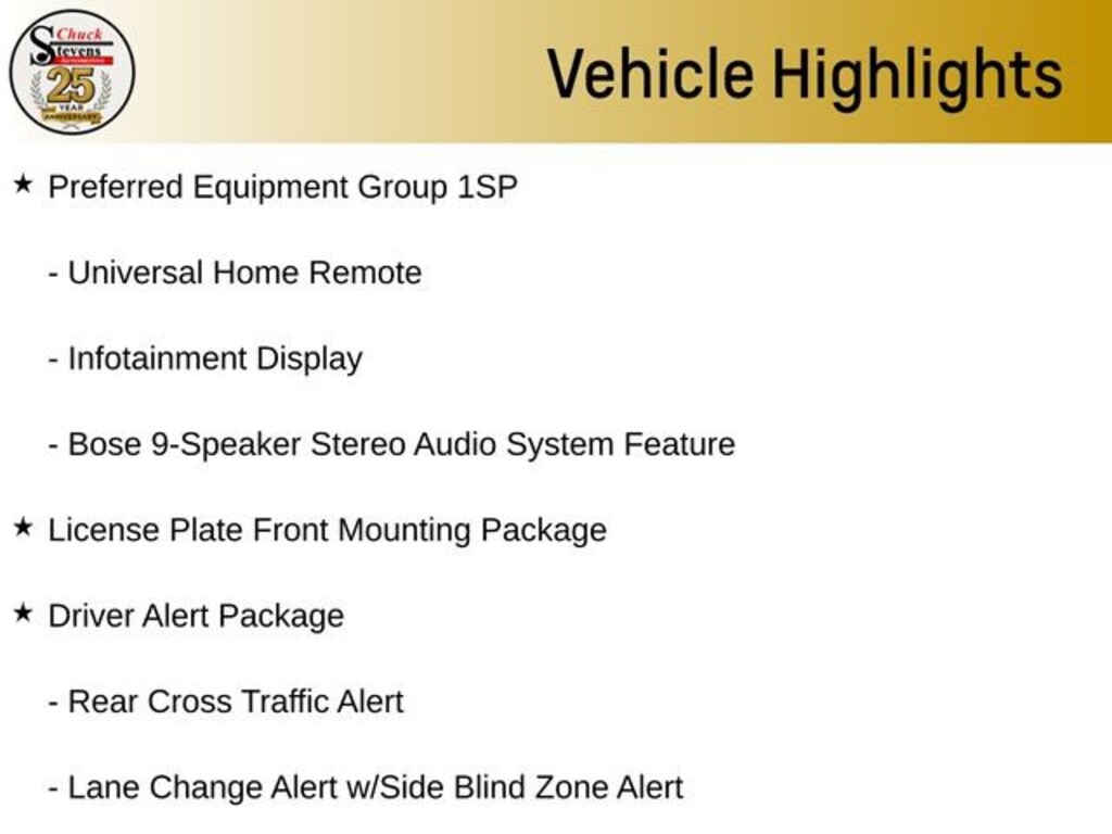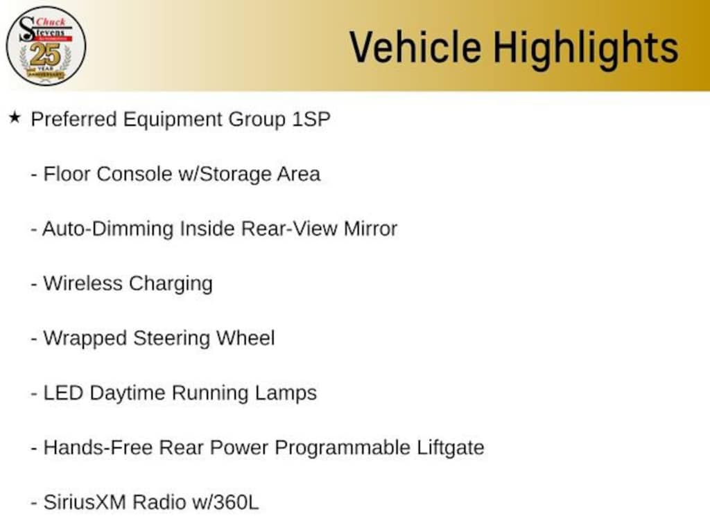 Inside, you'll find a wealth of luxurious and tech-savvy amenities, including the Bose 9-speaker audio system, SiriusXM with 360L, and an Enhanced Driver Information Center. Convenience features like the Hands-Free Rear Power Programmable Liftgate, Remote Start, and Universal Home Remote make everyday tasks a breeze.