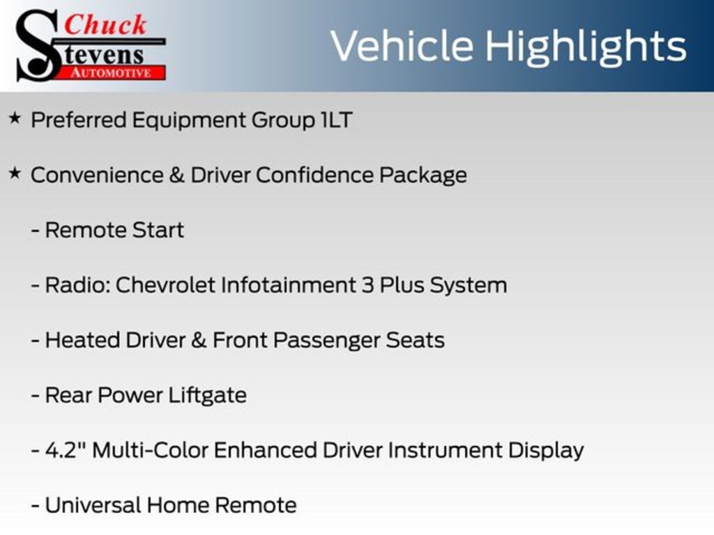 With its powerful 3.6L V6 SIDI VVT engine and 9-speed automatic transmission, the Traverse LT 1LT delivers an impressive balance of performance and efficiency, achieving up to 27 MPG on the highway. The Convenience and Driver Confidence Package further enhances the driving experience, providing features like heated front seats, a multi-color driver information center, and a rear power liftgate for added convenience.