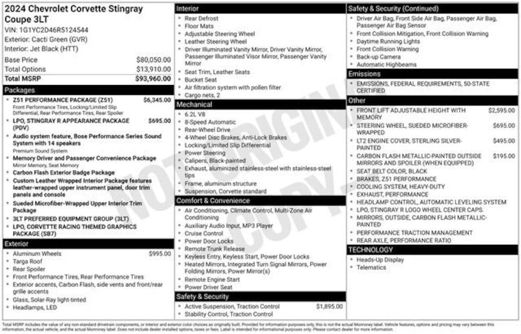 Used 2024 ChevroletCorvette Stingray 3LT Performance RWD