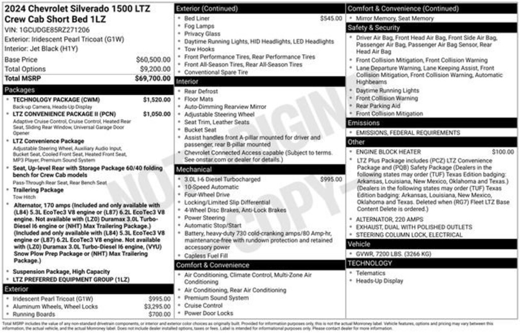 - Engine : Duramax 3L I-6 diesel direct injection, DOHC, variable valve control, intercooled turbo, diesel, engine with 305HP