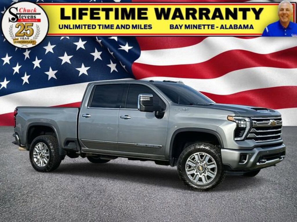 Welcome to Chuck Stevens Chevrolet located on HWY 31 South, Bay Minette Alabama. We are home of Lifetime Powertrain Warranty. A Lifetime Powertrain Warranty at no additional cost. Grab a great deal with our low-price guarantee on this 2024 Chevrolet Silverado 2500HD while we still have it. At Chuck Stevens Chevrolet our Pre-Owned vehicles have been fully inspected and reconditioned by a certified technician. The Sterling Gray Metallic 2024 Chevrolet Silverado 2500HD with Jet Black/Umber Leather interior is a great choice.The online price includes a $2,500 Cash Down or trade equity. To qualify, customers must trade in a vehicle with a minimum appraised value of $2,500 or Cash Down. All prices reflect dealership financing and include a $1,000 finance coupon. See dealer for full details.Clean CARFAX.Recent Arrival!2024 Chevrolet Silverado 2500HD High Country Sterling Gray Metallic 4D Crew Cab High Country 4WD Duramax 6.6L V8 Turbodiesel 10-Speed AutomaticLIFETIME POWERTRAIN WARRANTY PROGRAM is included at no additional charge for all vehicles that have less than 80,000 miles. It is one of the most comprehensive powertrain warranty programs in the market. See dealer for details.