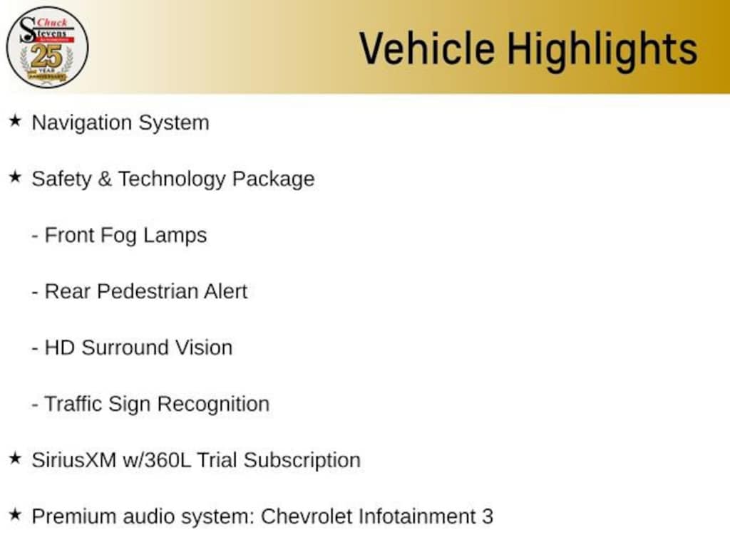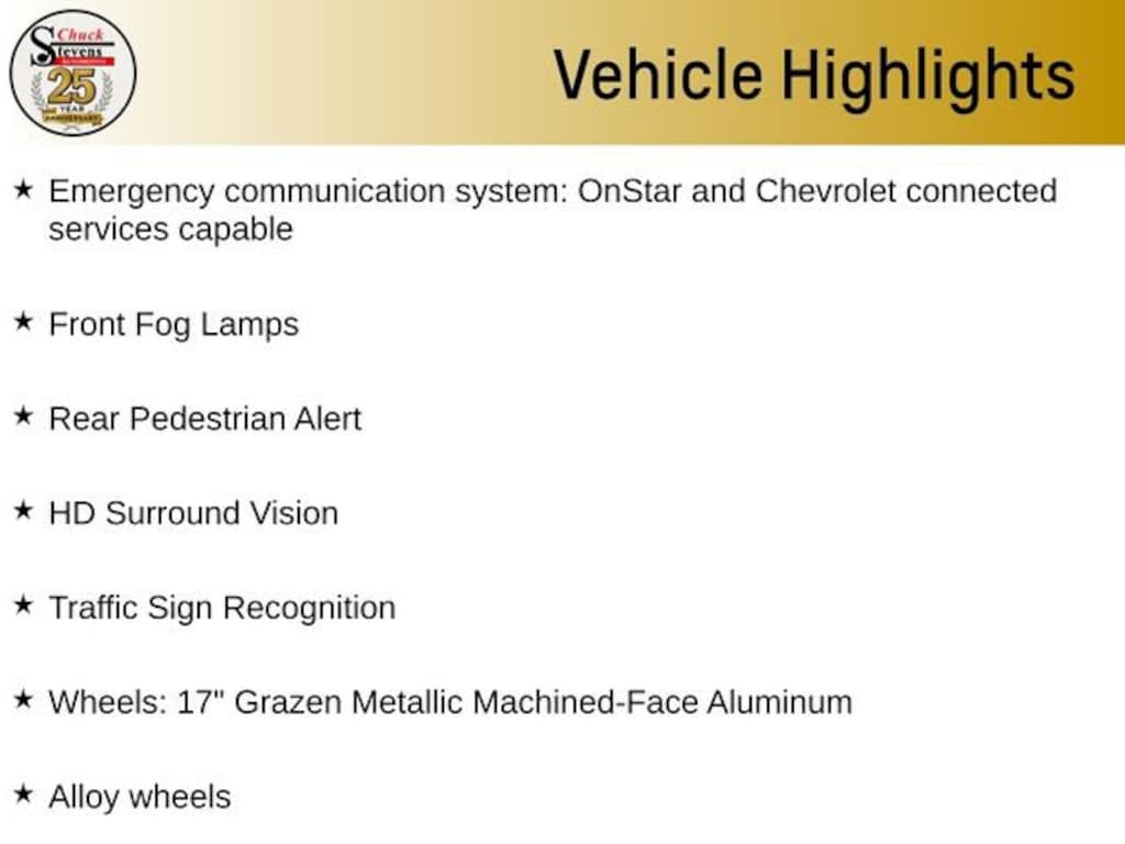 Welcome to Chuck Stevens Chevrolet located on HWY 31 South, Bay Minette Alabama. We are home of Lifetime Powertrain Warranty. A Lifetime Powertrain Warranty at no additional cost.Grab a great deal with our low-price guarantee on this 2026 Chevrolet Equinox LT while we still have it. At Chuck Stevens Chevrolet our Pre-Owned vehicles have been fully inspected and reconditioned by a certified technician. The White 2026 Chevrolet Equinox LT with Cloth Seat Trim interior is a wonderful choice.The online price includes a $2,500 Cash Down or trade equity. To qualify, customers must trade in a vehicle with a minimum appraised value of $2,500 or Cash Down. All prices reflect dealership financing and include a $1,000 finance coupon. See dealer for full details.This 2026 Chevrolet Equinox LT is packed with impressive features that will elevate your driving experience. With its 1.5L DOHC engine and CVT transmission, you'll enjoy efficient and responsive performance, achieving an impressive 26 MPG in the city and 28 MPG on the highway. The front-wheel-drive configuration provides confident handling and control, making this Equinox a pleasure to drive.The standout features of this Equinox LT include the Safety and Technology Package, which equips the vehicle with advanced safety and convenience technologies. Enjoy the convenience of the Rear Camera Mirror, Front Fog Lamps, Rear Pedestrian Alert, HD Surround Vision, and Traffic Sign Recognition. The LPO Floor Liner Package adds an extra layer of protection with all-weather floor liners and mats.Step inside and you'll be greeted by a premium audio system with Chevrolet Infotainment 3, SiriusXM with a 360L Trial Subscription, and an 11.3-inch diagonal advanced color LCD display. The OnStar and Chevrolet connected services provide added peace of mind, while the heated steering wheel and front seats ensure your comfort no matter the weather.The 17-inch Grazen Metallic Machined-Face Aluminum wheels give this Equinox a sleek and sophisticated appearance, complemented by the bold exterior design. With a host of other features, including a power driver's seat, rear window wiper, and more, this 2026 Chevrolet Equinox LT is a well-equipped and versatile SUV that will meet all your driving needs.LIFETIME POWERTRAIN WARRANTY PROGRAM is included at no additional charge for all vehicles that have less than 80,000 miles. It is one of the most comprehensive powertrain warranty programs in the market. See dealer for details.