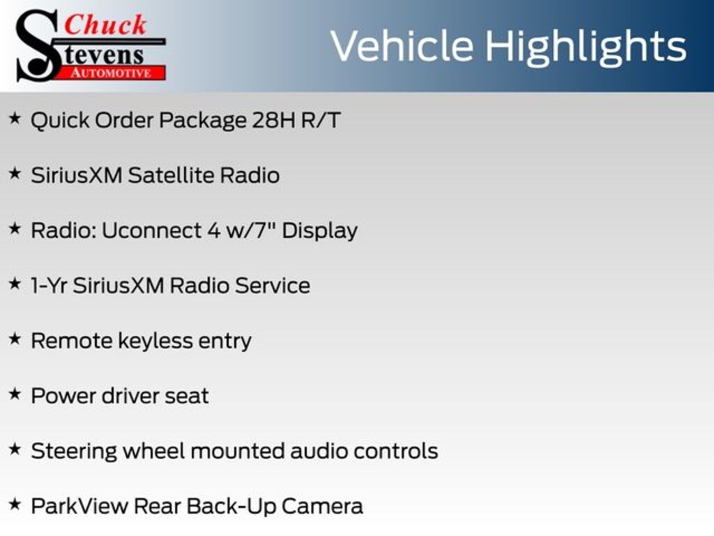 Step inside the cabin, and you'll be greeted by the Houndstooth Cloth Performance Seats, which provide excellent support and comfort for both the driver and passengers. The Uconnect 4 infotainment system with a 7-inch display keeps you connected and entertained, with features like Apple CarPlay, Android Auto, and SiriusXM Satellite Radio. The power driver's seat and tilt steering wheel allow you to find the perfect driving position, while the steering wheel-mounted audio controls and ParkView Rear Back-Up Camera make every drive more convenient.