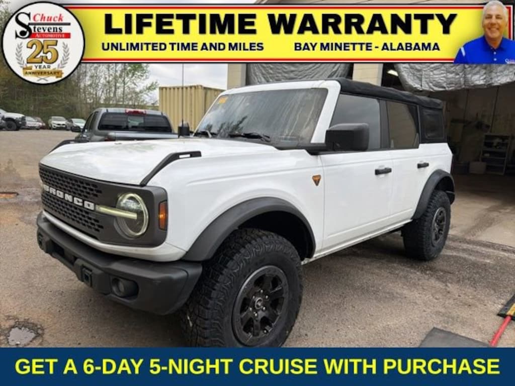 Grab a great deal with our low-price guarantee on this 2022 Ford Bronco Badlands while we still have it. At Chuck Stevens Chevrolet our Pre-Owned vehicles have been fully inspected and reconditioned by a certified technician. The White 2022 Ford Bronco Badlands with Black interior is a wonderful choice.