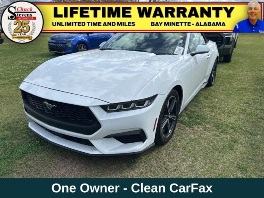 Welcome to Chuck Stevens Dodge Chrysler Jeep Ram Fiat located on HWY 31 South, Bay Minette Alabama. We are home of The Lifetime Powertrain Warranty at no additional cost. Grab a great deal with our low-price guarantee on this 2024 Ford Mustang EcoBoost Premium while we still have it. At Chuck Stevens CDJRF our Pre-Owned vehicles have been fully inspected and reconditioned by a certified technician. The White 2024 Ford Mustang EcoBoost Premium with Black interior is a wonderful choice.