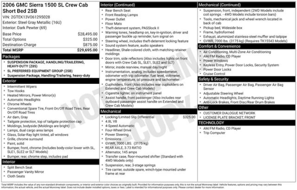 2006 GMC Sierra 1500 SL 4D Crew Cab SL Steel Gray Metallic 4WD Vortec 4.8L V8 SFI 4-Speed Automatic with Overdrive