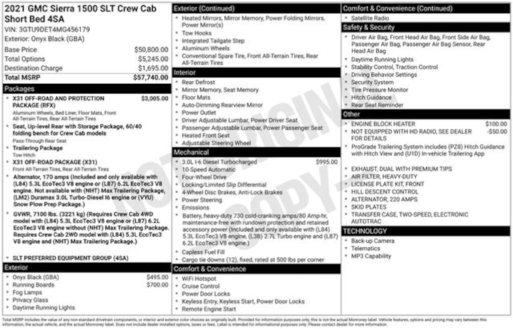2021 GMC Sierra 1500 SLT 4D Crew Cab SLT Onyx Black 4WD 3.0L I6 10-Speed Automatic