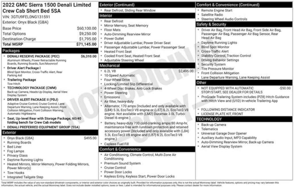 2022 GMC Sierra 1500 Limited Denali 4D Crew Cab Denali Onyx Black 4WD EcoTec3 6.2L V8 10-Speed Automatic