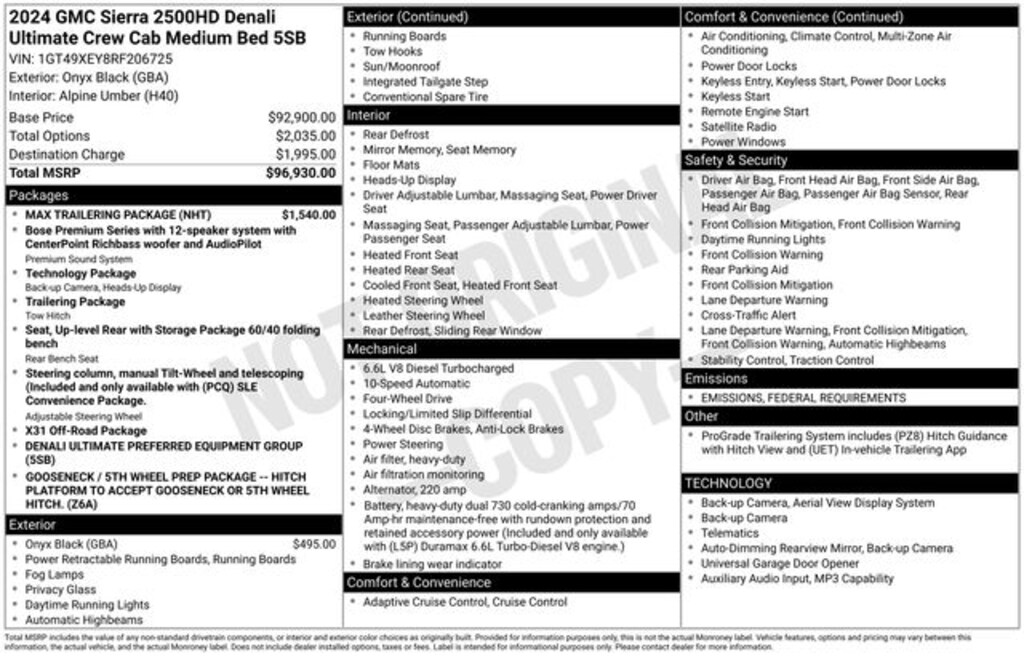 2024 GMC Sierra 2500HD Denali Ultimate 4D Crew Cab Denali Ultimate Onyx Black 4WD Duramax 6.6L V8 Turbodiesel 10-Speed Automatic