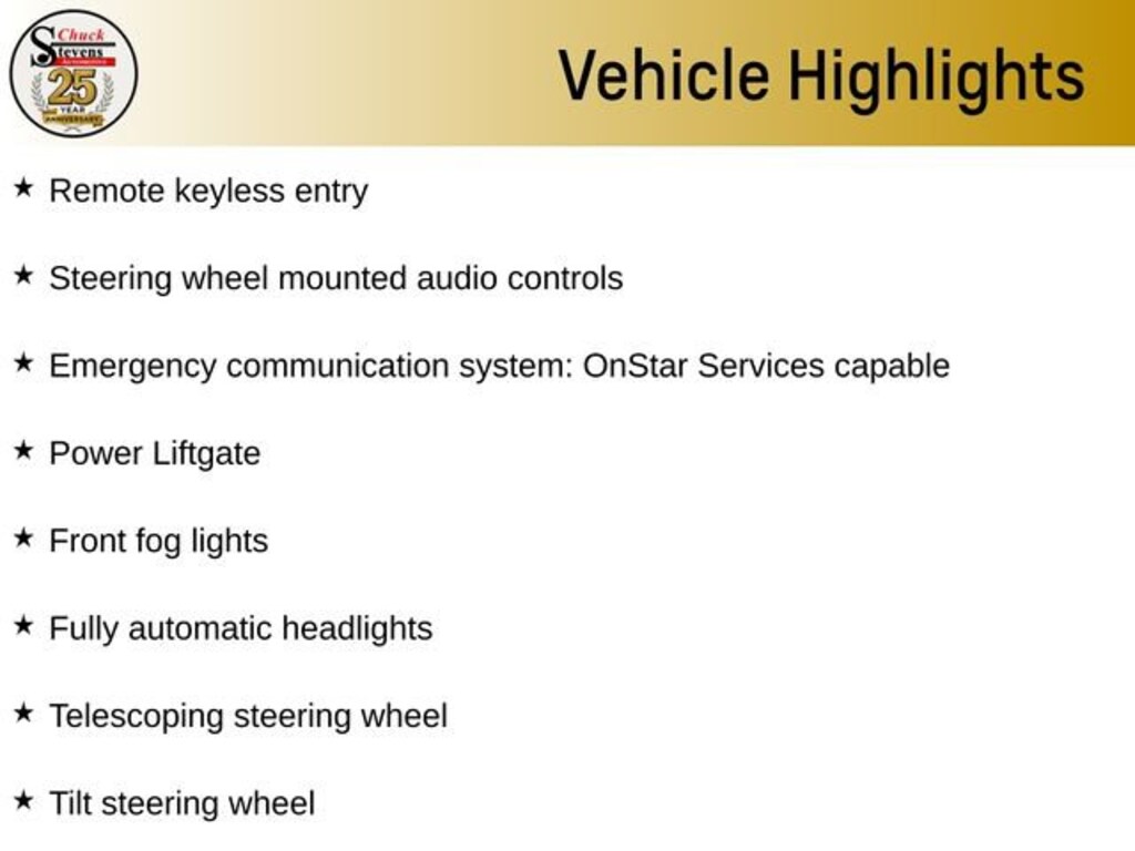 - Emergency SOS Capable : OnStar Services capable vehicle integrated emergency SOS system