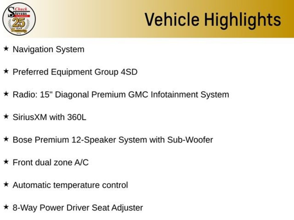 Welcome to Chuck Stevens Chevrolet located on HWY 31 South, Bay Minette Alabama. We are home of Lifetime Powertrain Warranty. A Lifetime Powertrain Warranty at no additional cost.Grab a great deal with our low-price guarantee on this 2025 GMC Acadia Elevation while we still have it. At Chuck Stevens Chevrolet our Pre-Owned vehicles have been fully inspected and reconditioned by a certified technician. The White 2025 GMC Acadia Elevation with Cloth Seat Trim interior is a wonderful choice.The online price includes a $2,500 Cash Down or trade equity. To qualify, customers must trade in a vehicle with a minimum appraised value of $2,500 or Cash Down. All prices reflect dealership financing and include a $1,000 finance coupon. See dealer for full details.This exceptional 2025 GMC Acadia Elevation comes equipped with a powerful 2.5L DOHC engine paired with an 8-Speed Automatic transmission and capable All-Wheel Drive system. With an impressive 19 MPG in the city and 24 MPG on the highway, this SUV offers exceptional efficiency and versatility for your daily driving needs.Elevate your driving experience with the premium features included in this Acadia Elevation. Enjoy the convenience of the Navigation System, the immersive sound of the Bose Premium 12-Speaker System with Sub-Woofer, and the advanced connectivity of the 15 Diagonal Premium GMC Infotainment System with SiriusXM with 360L. Stay comfortable with Automatic Temperature Control, Front Dual Zone A/C, and Heated Front Seats.Indulge in the luxurious touches that set this Acadia apart, such as the 8-Way Power Driver Seat Adjuster, Telescoping Steering Wheel, and Tilt Steering Wheel. Enhance your driving experience with the Steering Wheel Mounted Audio Controls and Remote Keyless Entry for added convenience.Safety is a top priority, and this Acadia Elevation delivers with features like the Emergency Communication System, Rear View Camera, and a comprehensive suite of airbags and stability control systems. Elevate your driving experience with the Power Liftgate and Automatic Headlights for added versatility and convenience.LIFETIME POWERTRAIN WARRANTY PROGRAM is included at no additional charge for all vehicles that have less than 80,000 miles. It is one of the most comprehensive powertrain warranty programs in the market. See dealer for details.
