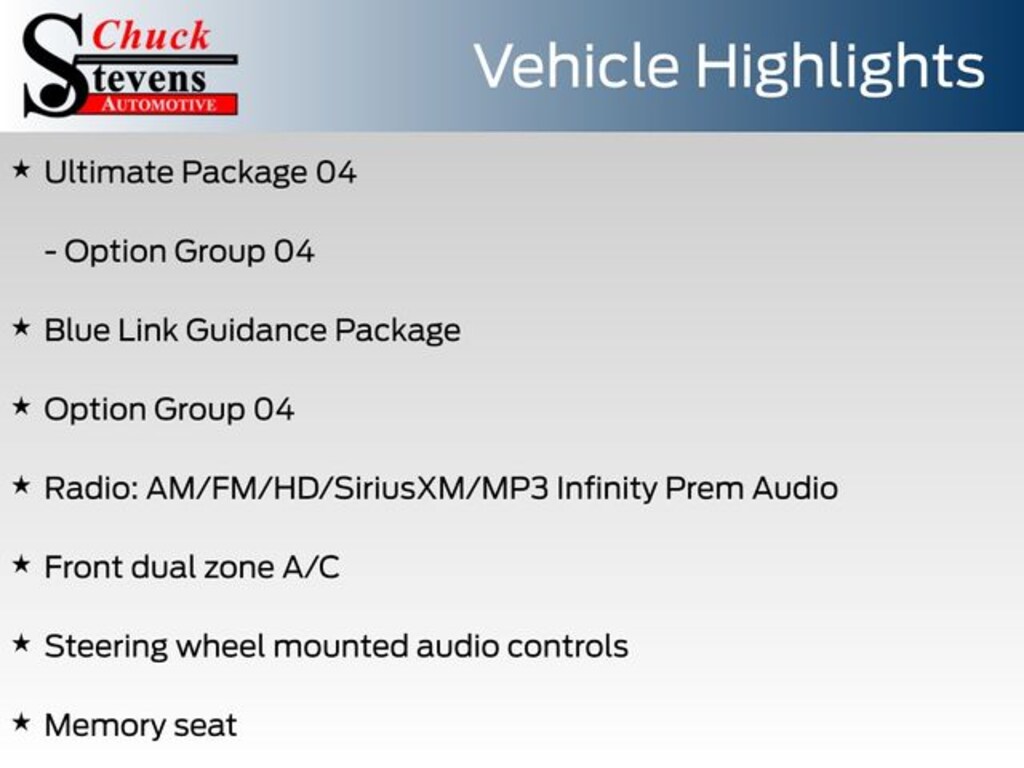 Don't miss your chance to own this exceptional 2019 Hyundai Sonata Limited. Visit our showroom today and experience the difference that Chuck Stevens CDJRF can make in your car-buying journey.