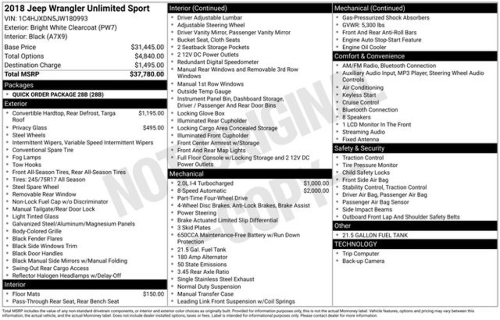Whether you're exploring the great outdoors or navigating the daily commute, this 2018 Jeep Wrangler Unlimited Sport is ready to take you there in style and comfort. With its impressive fuel efficiency, spacious interior, and uncompromising Jeep capability, it's the perfect choice for the active, adventurous driver.
