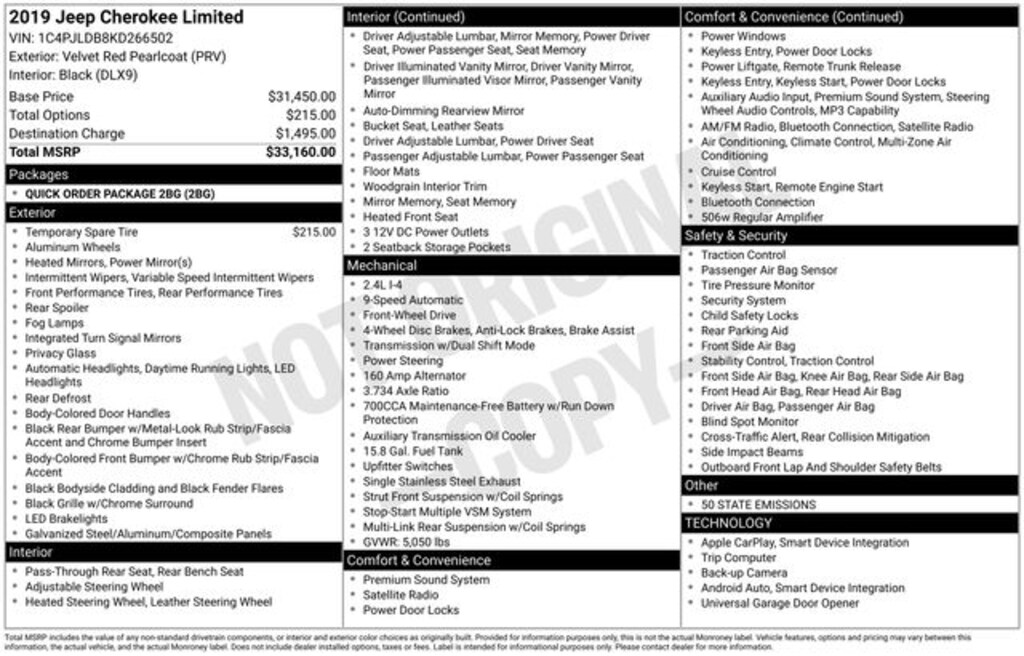 2019 Jeep Cherokee Limited 4D Sport Utility Limited Velvet Red Pearlcoat FWD 2.4L I4 9-Speed 948TE Automatic