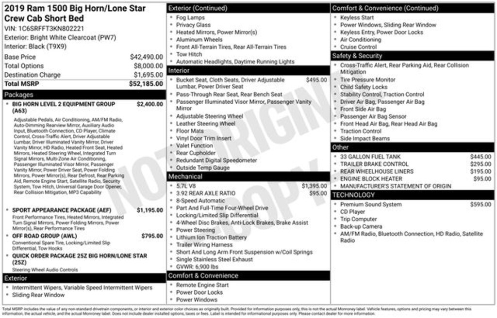 2019 Ram 1500 Big Horn/Lone Star 4D Crew Cab Big Horn/Lone Star Bright White Clearcoat 4WD HEMI 5.7L V8 Multi Displacement VVT 8-Speed Automatic