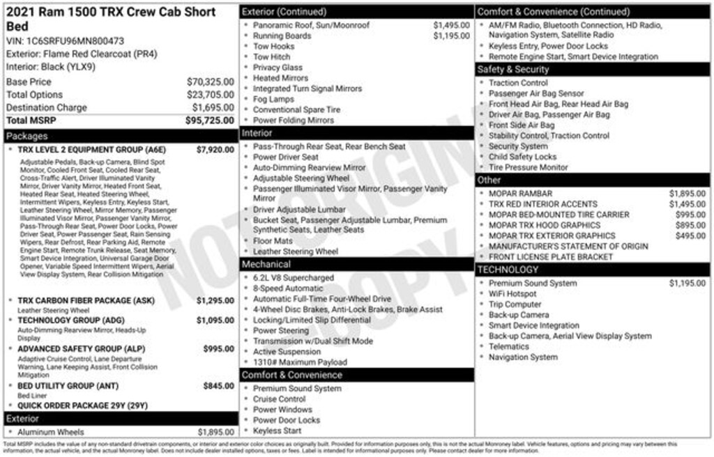 2021 Ram 1500 TRX 4D Crew Cab TRX Flame Red Clearcoat 4WD 6.2L Supercharged HEMI V8 SRT 8-Speed Automatic