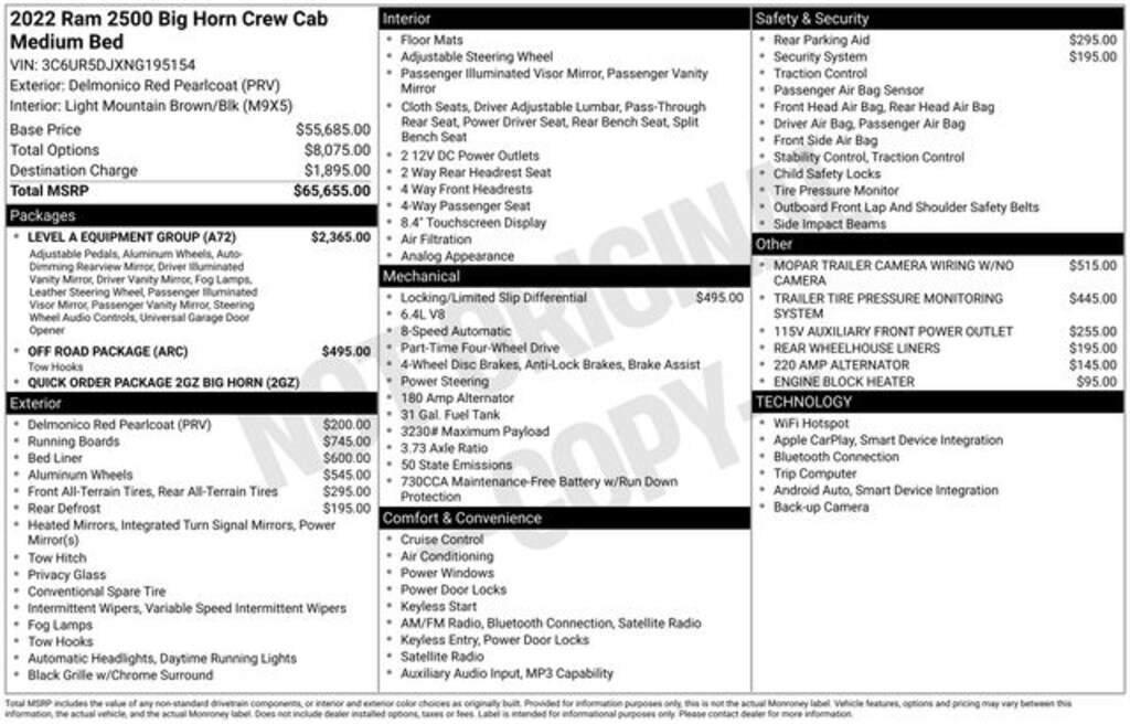 Welcome to Chuck Stevens Dodge Chrysler Jeep Ram Fiat located on HWY 31 South, Bay Minette Alabama. We are home of The Lifetime Powertrain Warranty at no additional cost. Grab a great deal with our low-price guarantee on this 2022 Ram 2500 while we still have it. At Chuck Stevens CDJRF our Pre-Owned vehicles have been fully inspected and reconditioned by a certified technician. The Delmonico Red Pearlcoat 2022 Ram 2500 with Light Mountain Brown/Blk Cloth interior is an outstanding choice.