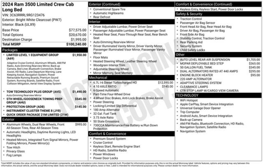 This 2024 Ram 3500 Limited is a true workhorse, built to tackle any job you throw its way. With its impressive features and capabilities, it's the perfect choice for those who demand the best in power, technology, and versatility.
