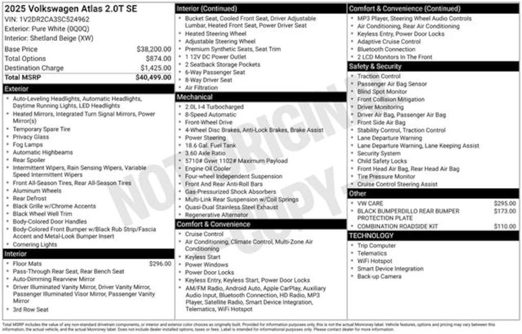 Take advantage of our low-price guarantee on this 2025 Volkswagen Atlas. This Atlas comes finished in Pure White with a Shetland Beige interior, making it a terrific choice for your next vehicle.